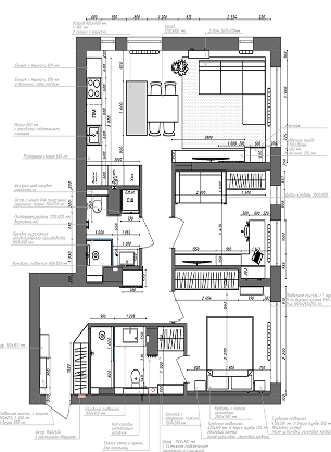Кухня является логическим продолжением гостиной. Обеденная зона выражена в острове из натурального камня, эффектными барными стульями и стильными подвесными светильниками. Это эргономичное пространство, в котором каждая деталь подчинена эстетике и функционалу.